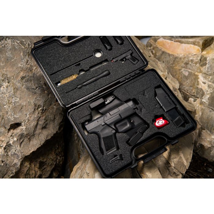 La pistola CANiK METE MC9 de 9 mm, semiautomática y de percutor, cuenta con seguro integrado y viene de serie con un suave recorrido del gatillo, un freno preciso y un reinicio corto. Fue diseñada pensando en la comodidad del porte oculto. El punto de mira blanco contrasta con el alza negra para agilizar la alineación y la adquisición del objetivo. Esta pistola, fiable y precisa, cumple todos los requisitos: tiene todo lo necesario y nada que no necesite.